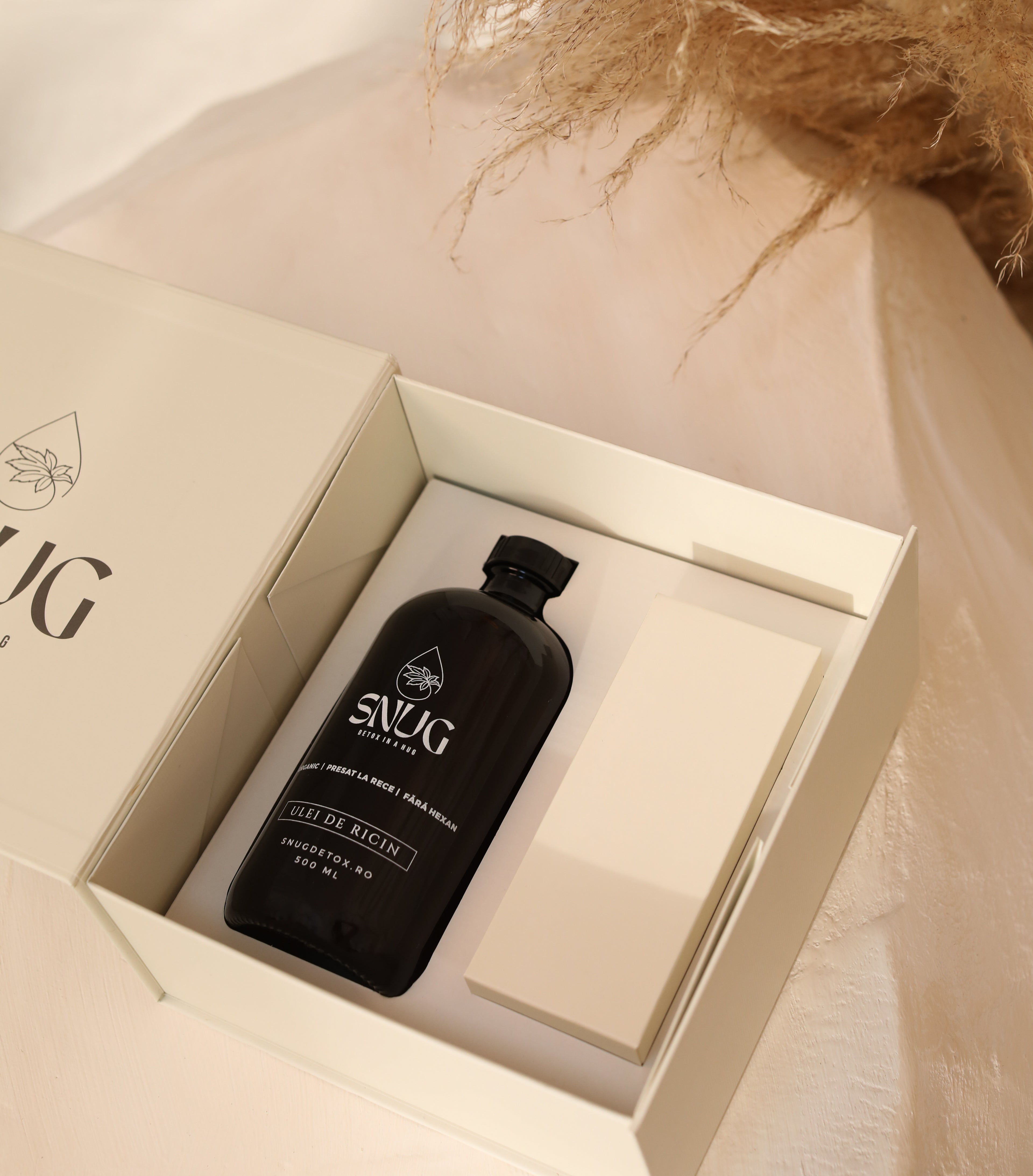 Una dintre condițiile esențiale de care am ținut cont atunci când am creionat kit-ul SNUG a fost ca acesta să fie un produs curat. Cataplasmele sunt confecționate cu dăruire într-un mic atelier de croitorie din zona Moldovei, unde folosim doar materiale certificate OEKO-TEX®, iar uleiul de ricin este 100% pur și fără hexan, fiind certificat de către Soil Association.